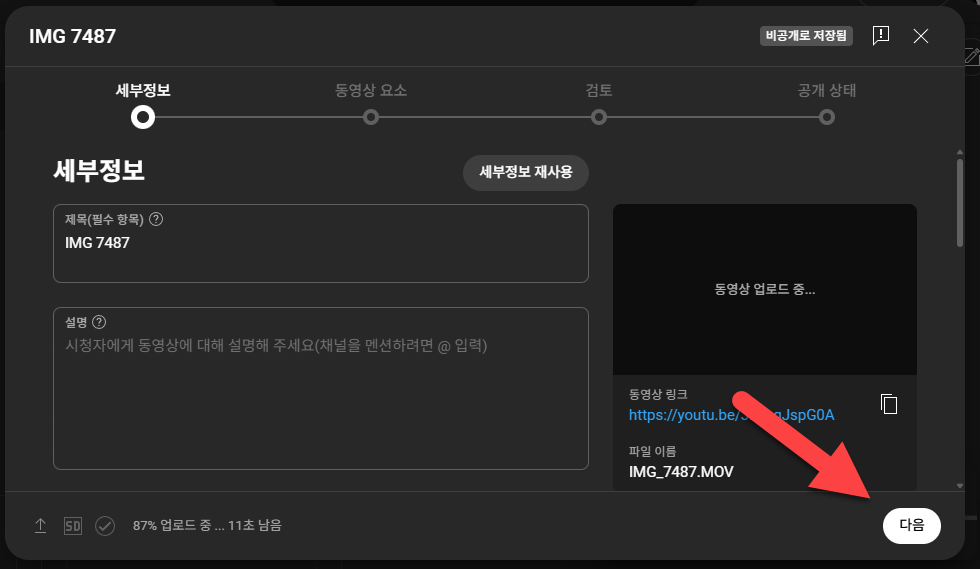 - 제목 입력 (해시태그 #Shorts 포함 권장)