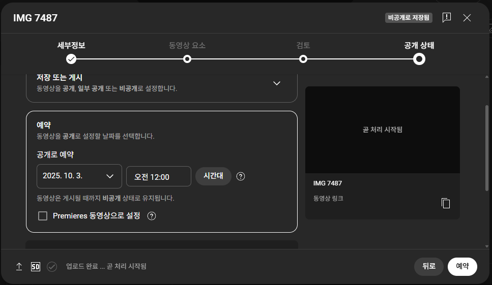 💡 프로 팁: 예약된 영상은 ‘콘텐츠’ 메뉴에서 ‘예약됨’ 탭으로 확인 가능합니다.