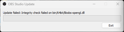 OBS Studio를 자동 업데이트하는 과정에서 libobs-opengl.dll 파일의 무결성 검사가 실패할 때 나타나는 오류입니다. 주로 다음과 같은 상황에서 발생합니다.