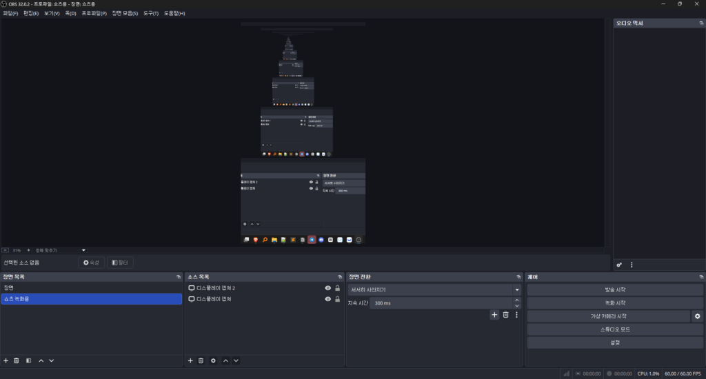 설치 완료 후 OBS를 실행하여 정상 작동을 확인합니다.